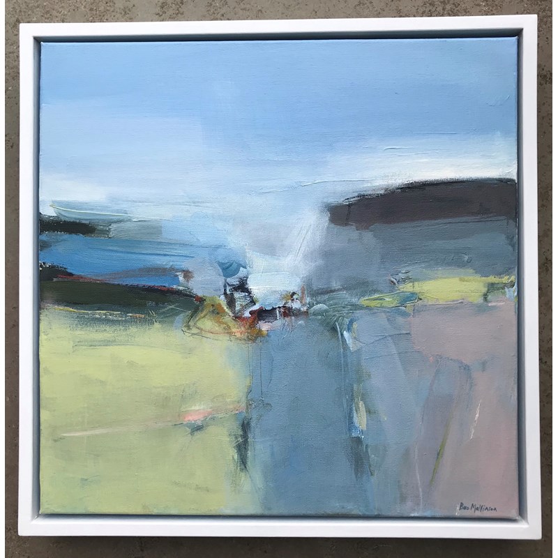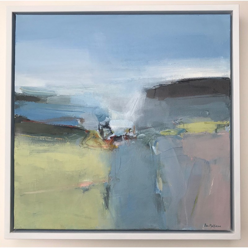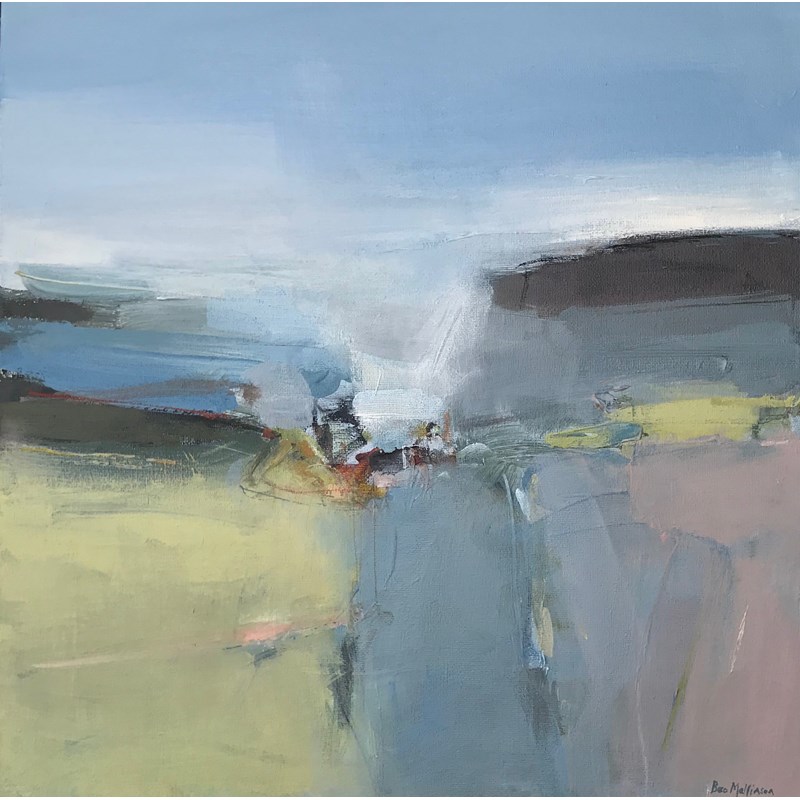 Some paintings remain very close to their origins, hinting at a place visited or remembered. These paintings are often smaller and more gestural, translating an idea quickly and embracing chance and accident. Other paintings evolve slowly and are reworked, building up the surface organically and allowing Boo to translate ambiguous images into new compositions. They are still about a visual encounter with the landscape yet there is a process of simplification, allowing her to explore colour and abstraction and to move intuitively between the real and the imaginary. This ambiguity allows the viewer the freedom to put their own interpretation into the paintings and be reminded of their own experiences of being within the landscape.