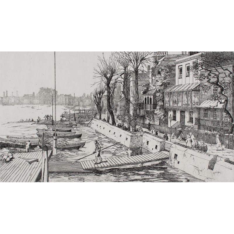 Little-known etcher, born in Bradford, Yorkshire, May Tremel began her training as an artist at Goldsmiths’ College and progressed to the Royal College of Art where she learned engraving and printmaking techniques under Sir Frank Short. She exhibited, intermittently, at the Royal Academy and other major exhibitions between the years 1907-1936 and was invited to exhibit at the First International Exhibition of Etching at the Art Institute of Chicago. Tremel lived in Barnes, West London from around 1907 until the mid-1920’s. However, by the 1930’s she had relocated to the Kentish countryside near Sevenoaks where she eventually died in Tonbridge.