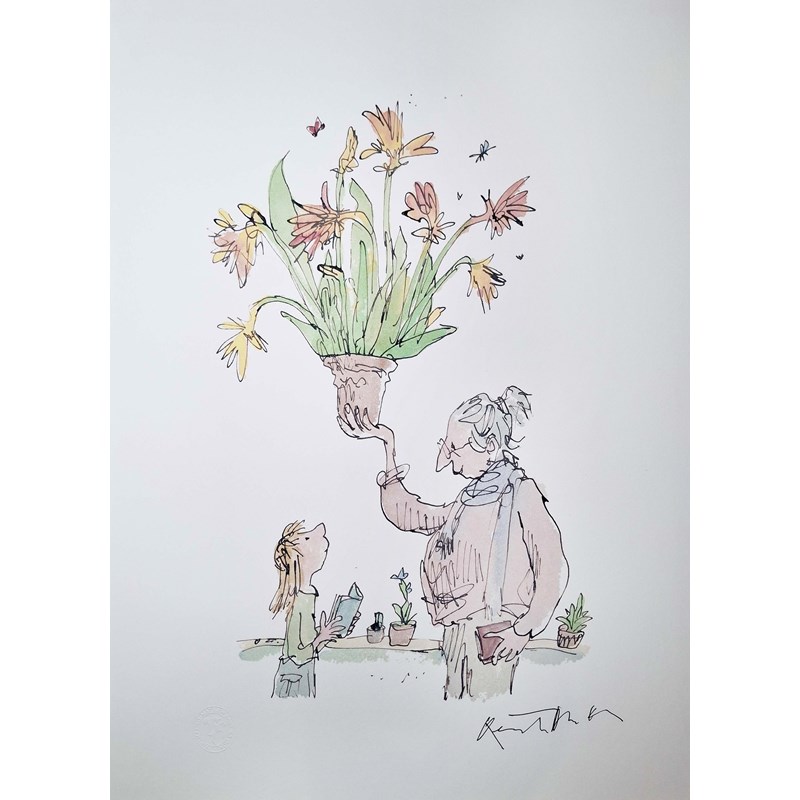 Quentin Blake was born in Sidcup in 1932 and has drawn for as long as he can remember. His professional life started with cartoons submitted to Punch and The Spectator, the earliest of which appeared when he was 16 and still at school. He is author of many of his own books – Mister Magnolia, Clown – but is also known for his collaborations with other writers such as Russell Hoban, Michael Rosen, John Yeoman, and most famously, Roald Dahl. He was appointed the first Children’s Laureate in 1999, is a CBE and an honorary doctor of Cambridge University. He received a knighthood for ‘services to illustration’ in the New Year’s Honours for 2013, and was appointed ‘Companion of Honour’ in the Platinum Jubilee Honours in 2022.