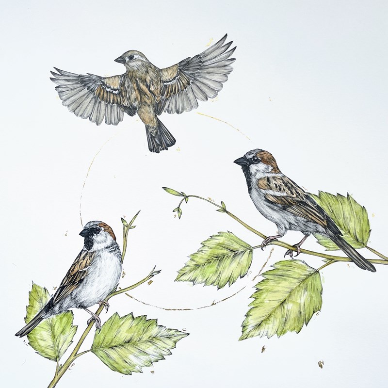 Dais Scott Bennett is a UK‑based artist whose heart belongs to birds and the wild places they inhabit. Living aboard her narrowboat Mallard, she draws and hand-embellishes with gold, bringing each feathered subject to life. With a background in animal conservation and museum studies, she blends art and science to celebrate the beauty and fragility of the UK’s native birdlife. Driven by a mission to draw all 628 of the UK’s bird species, with 75 of these already completed. Dais invites viewers to pause, connect, and rediscover the nature fluttering at their doorsteps.