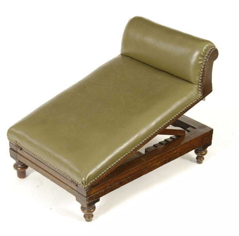 An Alfred Carter mahogany gout stool, replaced leather, 67.5cm (26.5in) long.