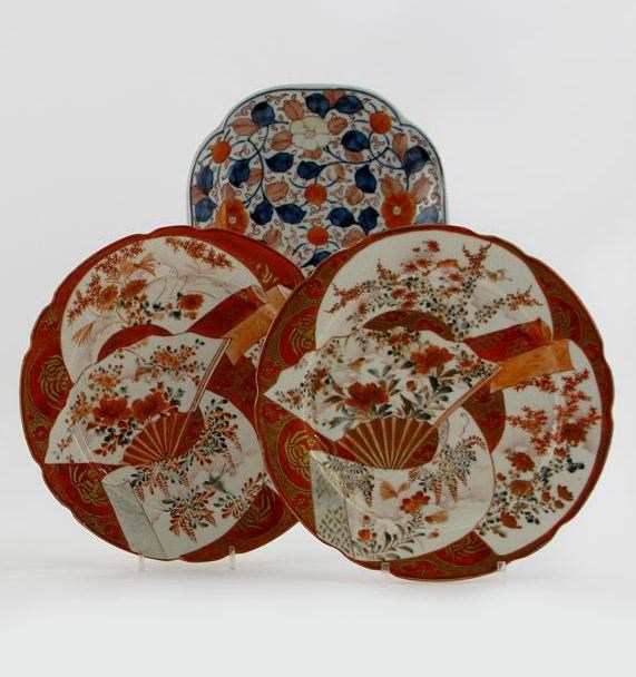 A pair of Japanese Imari pattern plates 24cm (4.5in) diameter and a Japanese plate decorated with...
