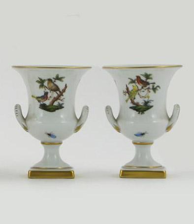 A pair of small Herend vases each decorated with birds and insects on a white and gilt ground, 11cm (4.5in) high. (2)