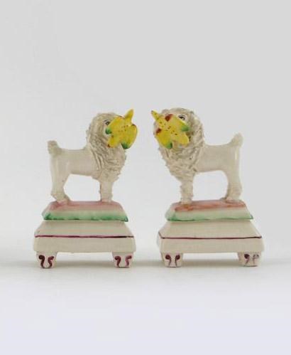 A pair of models of a spaniel carrying a bird in his mouth, 9.5cm (3.75in) high.