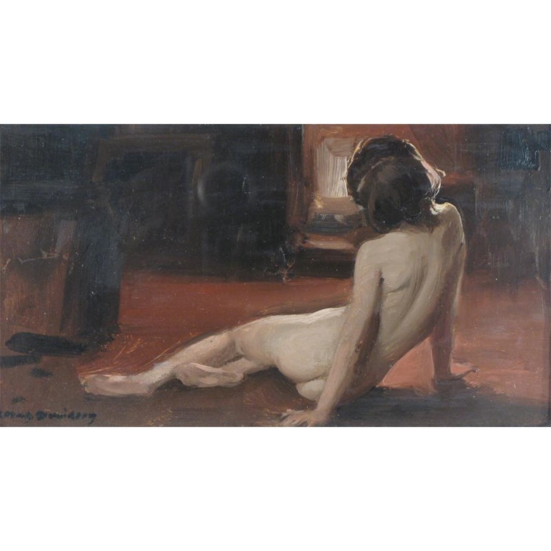 English School early 20th century: Study of a nude, signed indistinctly ** Davidson, oil on artist board, 15.25 x 29cm (9 x 11.5in).