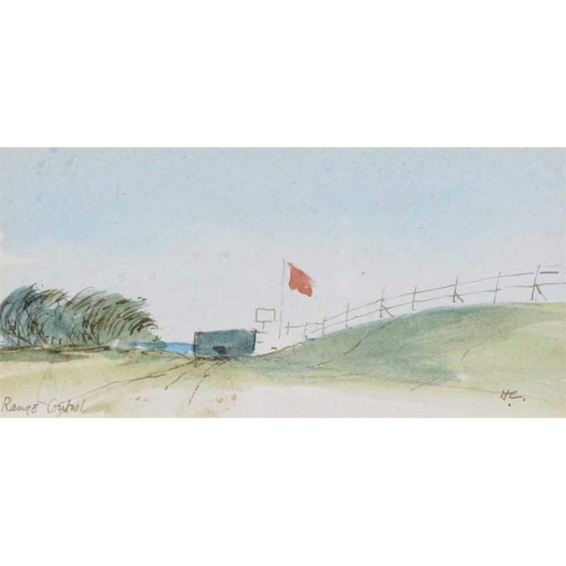 Hugh Casson (1910-1999): Range Control, signed and titled, watercolour, 6.5 x 13.5cm (2.5 x 5.25in).