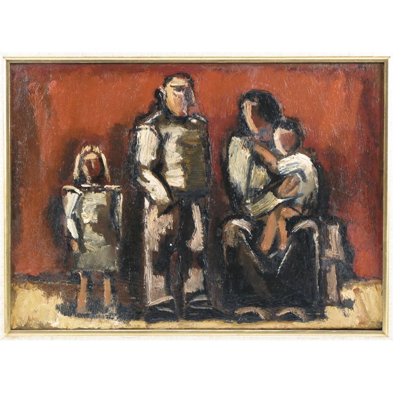 Josef Herman (1911-2000): Family, signed and titled verso, oil on canvas, 25 x 36cm (9.75 x 14.25in).