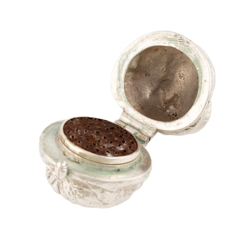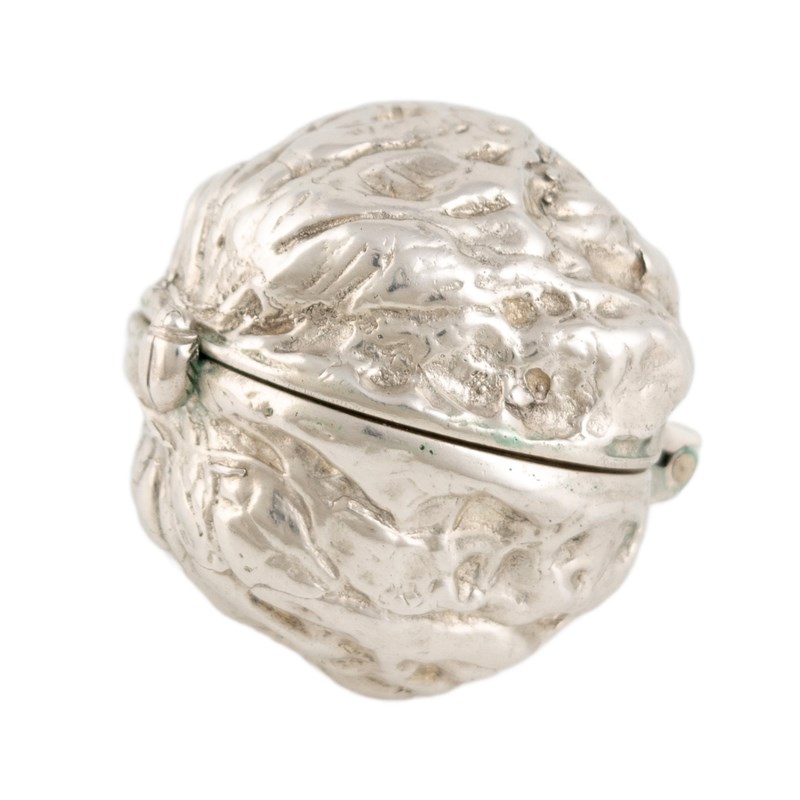 modelled as a walnut with textured decoration, the interior with a pull-out grater, length 3.5cm.