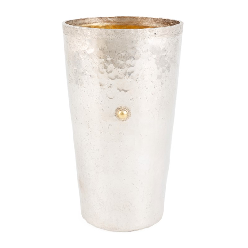 tapering circular form, spot-hammered decoration, set with a gold bead, height 15.6cm, approx. weight 18.1oz.