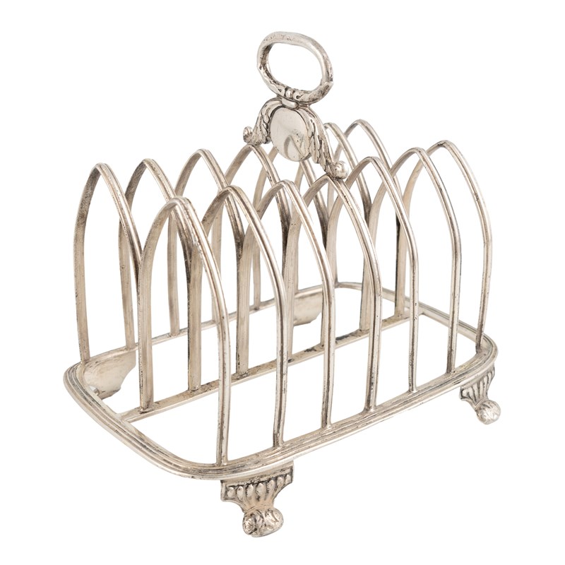 rounded rectangular form, reeded wire-work frame, on four fluted and foliate bracket feet, length 15cm, approx. weight 8.2oz.