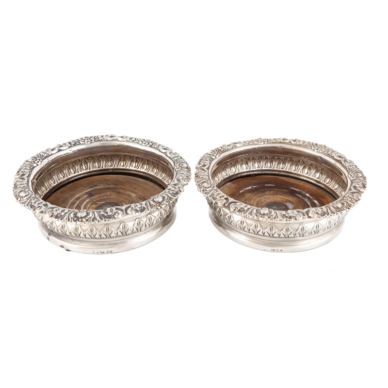 A matched pair of George III/IV silver wine coasters,