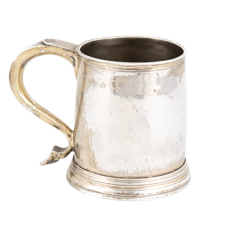 circular tapering form, scroll handle, height 9.6cm, approx. weight 8.1oz.