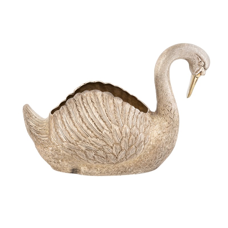 modelled in a swimming position, textured feathers, open body, and with a gilded beak, length 23cm, approx. weight 31.9oz.