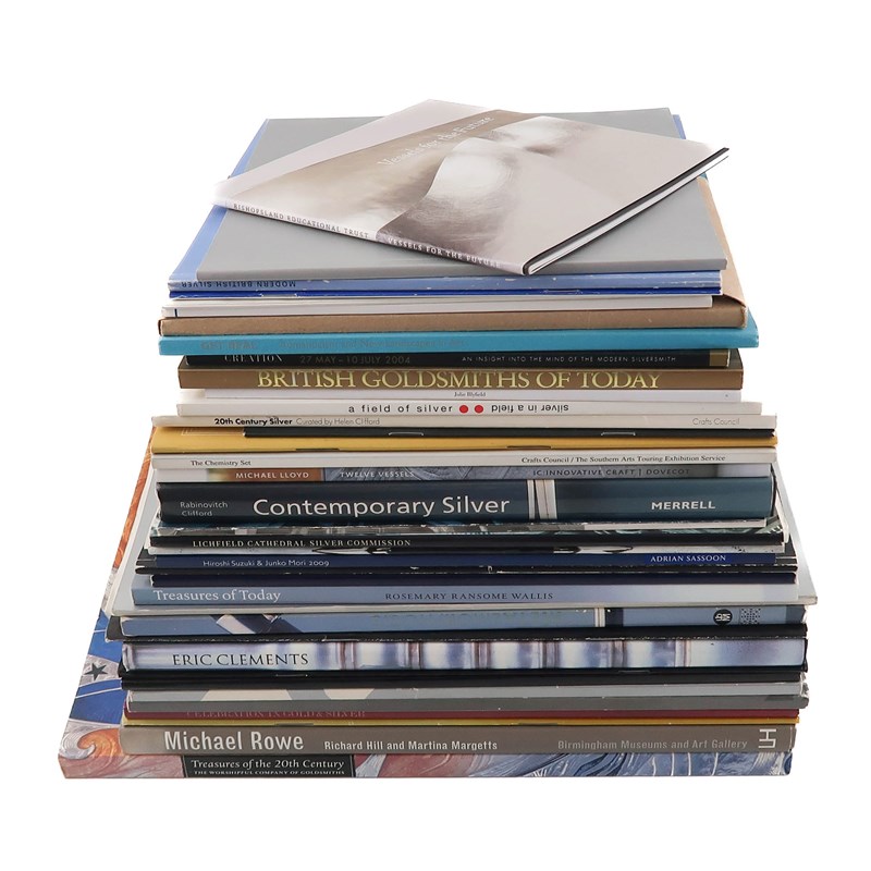 including: Eric Clements, Silver and Design 1950-2000, Treasures of the 20th Century, Contemporary Silver, The Millennium Silver- York Minster, Alex Styles- Retrospective, Hiroshi Suzuki, and other volumes. (qty)