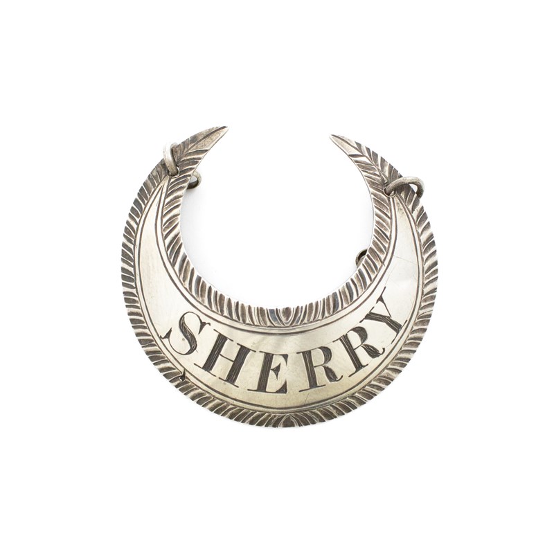 crescent-shaped, feathered border, incised 'Sherry', length 4.2cm, approx. weight 0.2oz.
