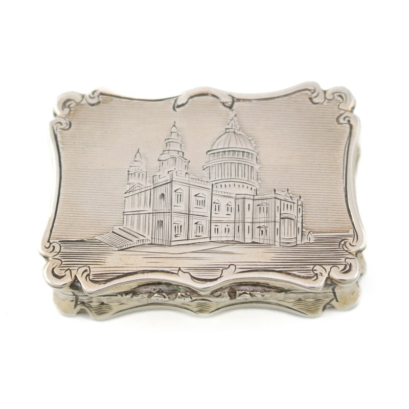 A Victorian silver engraved 'castle-top' vinaigrette, St.Paul's Cathedral,