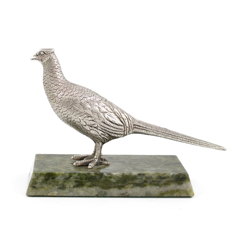modelled in a standing position, on a rectangular green-coloured stone base, length 15cm.