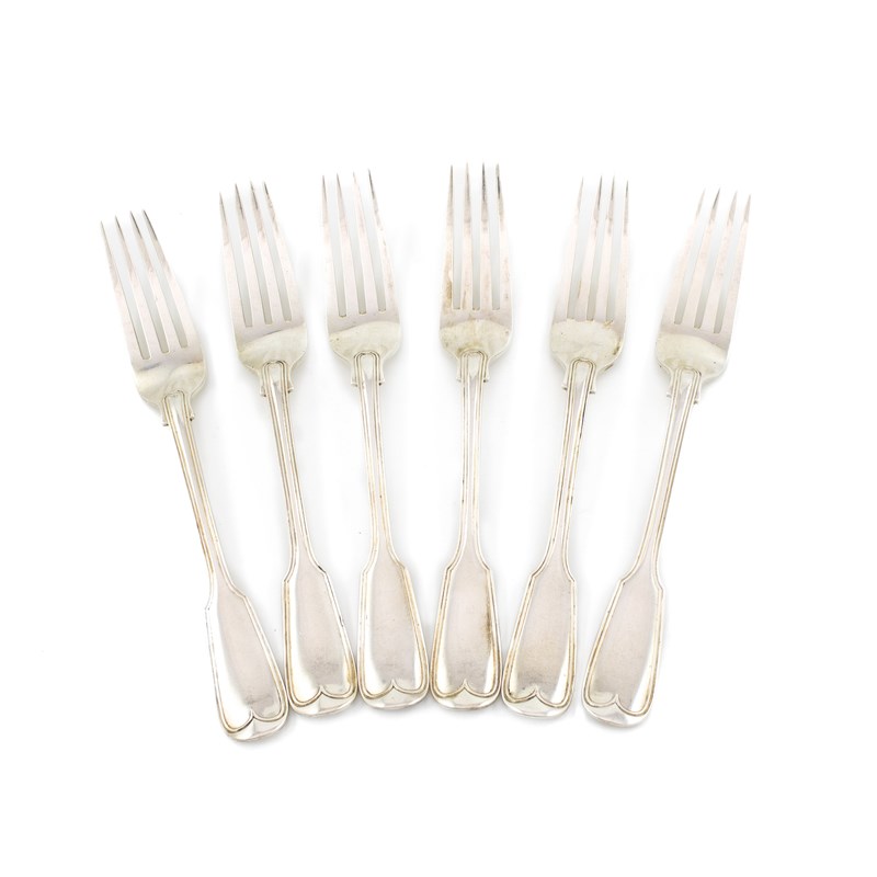 A set of six Victorian silver Fiddle & Thread table forks,