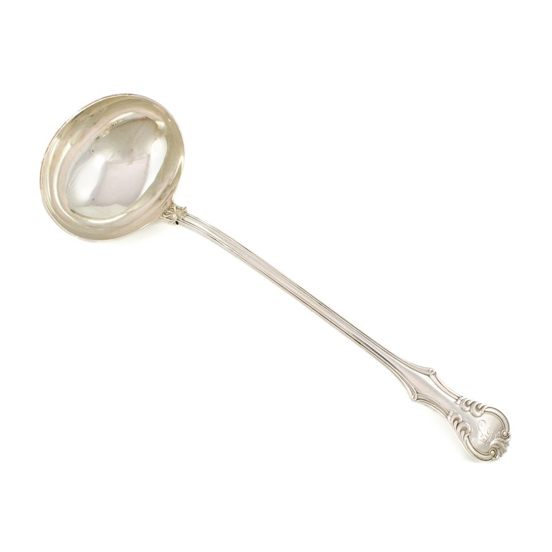 A Victorian silver Victoria pattern soup ladle,