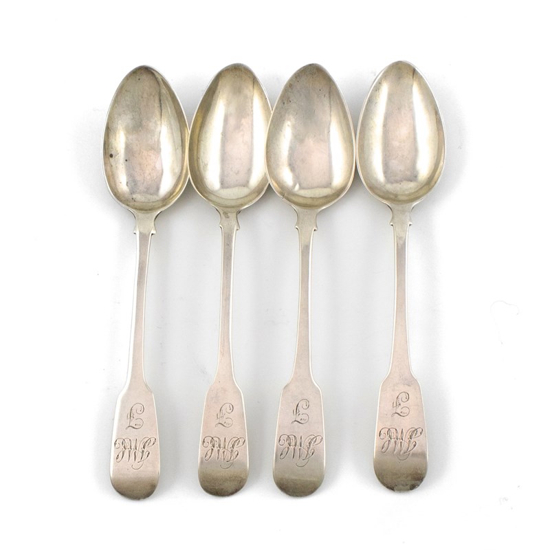 Four early-19th century silver Cape Fiddle pattern teaspoons,