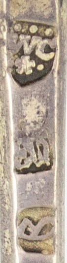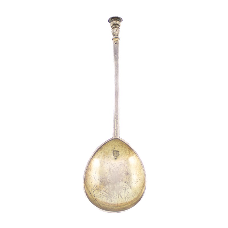 traces of gilding, fig-shaped bowl, faceted stem, the seal-top prick dot initialled 'R.K' over 'T.W', length 17.4cm, approx. weight 1.4oz.