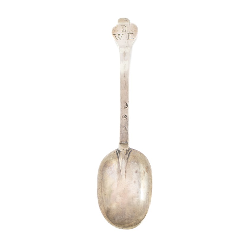 the reverse of the oval bowl with a plain raised rat-tail, the reverse of the terminal with scratch initials 'D' over 'WE', length 19.3cm, approx. weight 1.5oz.