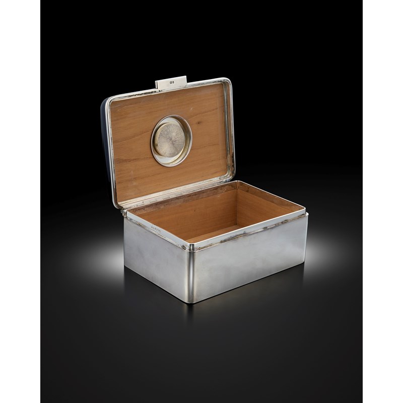 Φ By Gerald Benney, a modern silver and enamel cigar humidor,