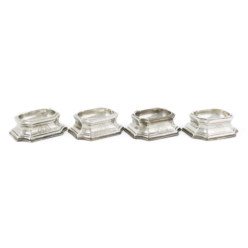 A matched set of four George II silver trencher salt cellars,