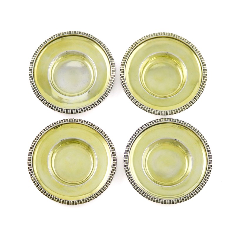 circular form, gadrooned border, diameter 10.2cm, total approx. weight 10.9oz. (4)
