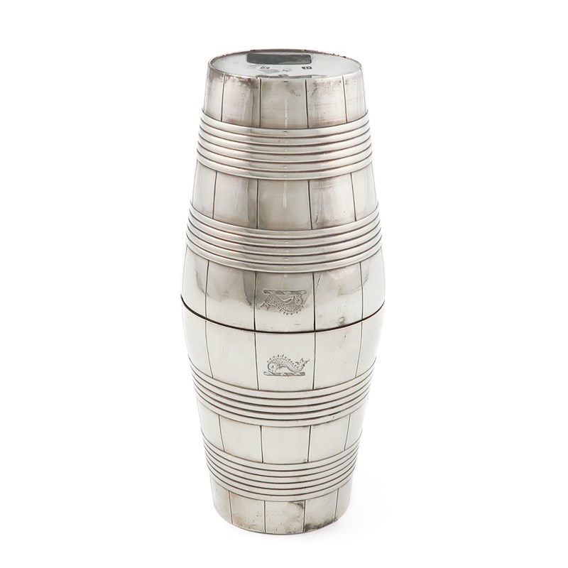 tapering form, with horizontal bands of reeded decoration, gilded interior, height 17cm, approx. weight 10.8oz.