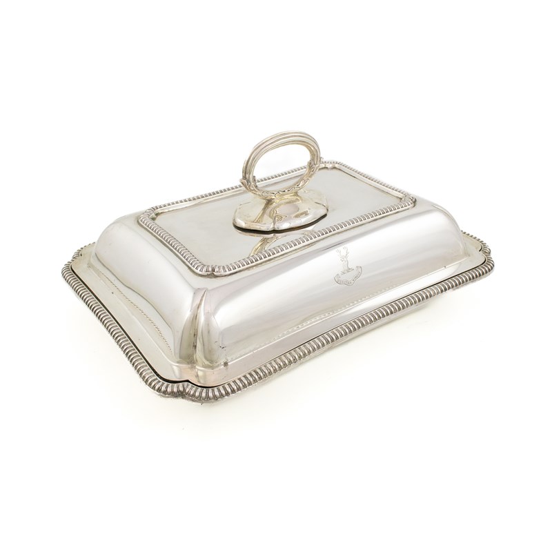 shaped rectangular form, gadroon borders, detachable handle, length 28.7cm, approx.weight 61.7oz.
