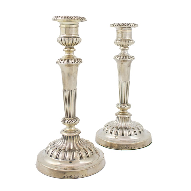 A pair of George III silver candlesticks,
