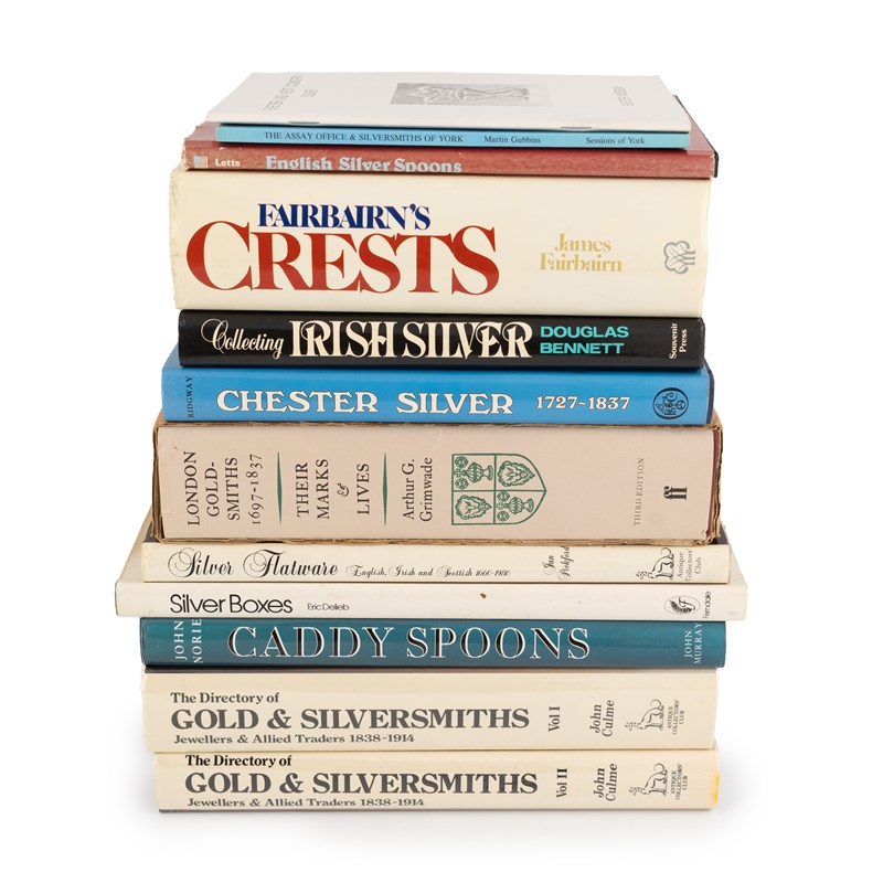 comprising: Culme, J., The Directory of Gold and Silversmiths 1838 - 1914, Grimwade, A.G., London Goldsmiths 1697-1837, Exeter and West Country Silver, Chester Silver 1727-1837, Collecting Irish Silver, and other volumes, (12)
