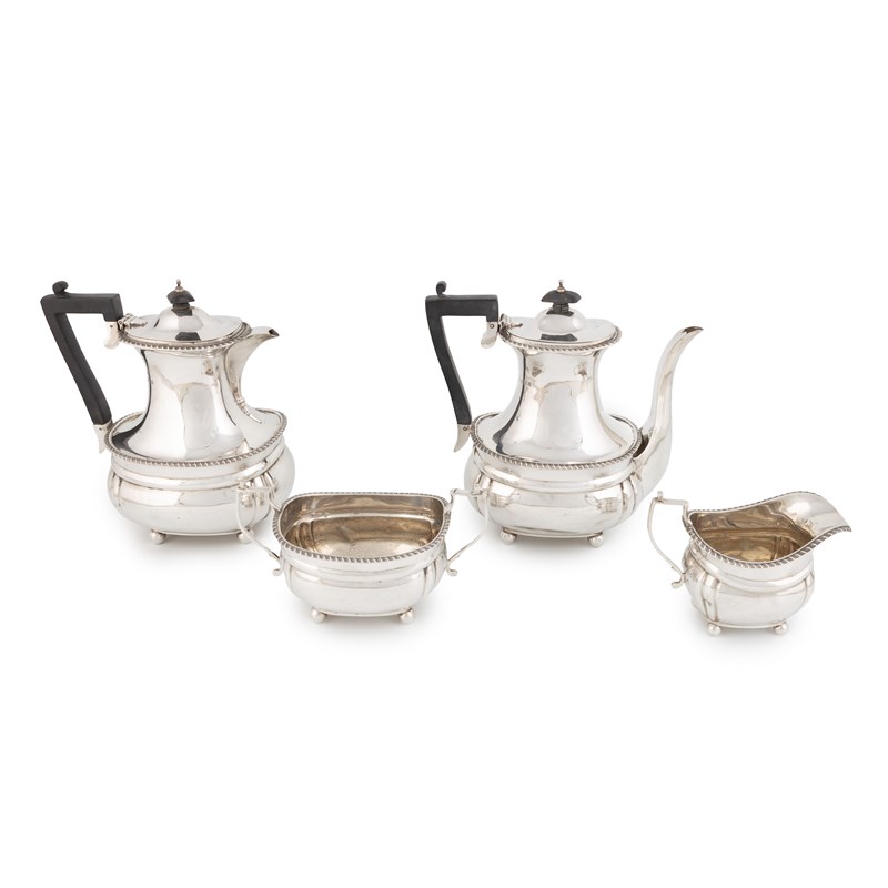 A four-piece silver tea set, by Heming & Co Ltd, London 1928, oval bellied forms with gadrooned