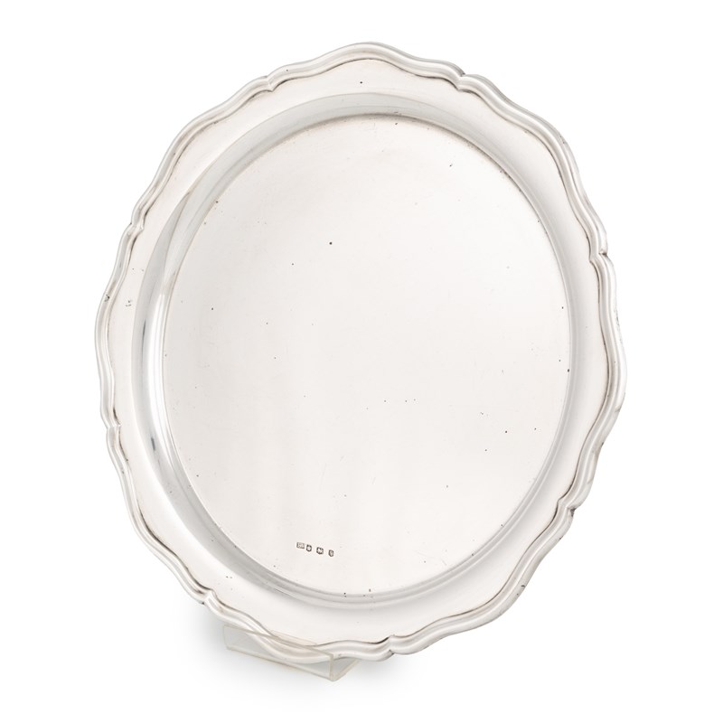 plain circular form with a moulded scalloped edge, diameter 31.7cm, approx. weight 26.2oz.