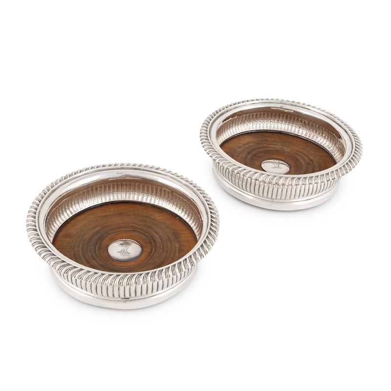A pair of William IV silver coasters, by Creswick & Co, Sheffield 1831, circular form with gadrooned