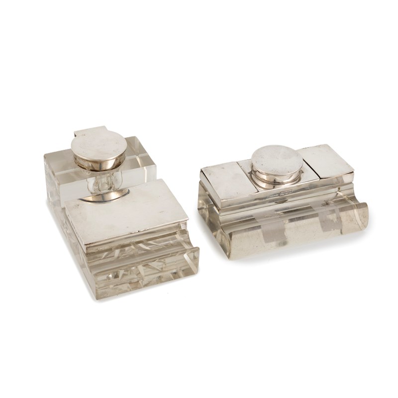 An Edwardian silver-mounted glass inkwell and stamp box,by John Grinsell & Sons, Birmingham