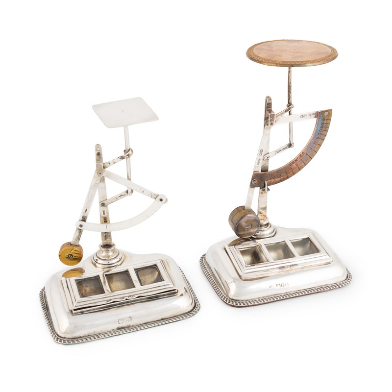Two Edwardian silver letter scales, by Grey & Co., London 1902 and 1903, rounded rectangular form