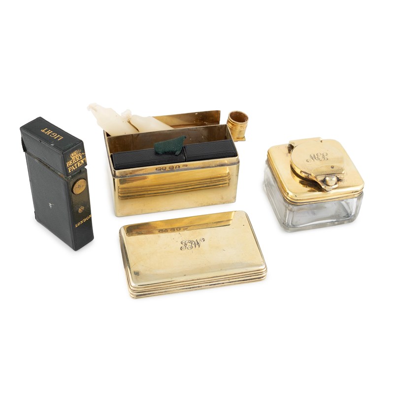 A George IV silver-gilt travelling inkwell and desk set, by Archibald Douglas, London 1827,