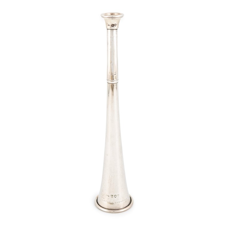 An Edwardian silver hunting horn, by Robert James Chaplin & Sons, London 1903, tapering circular