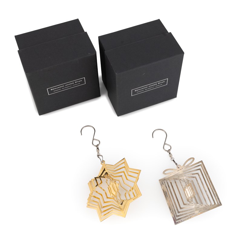 Two modern silver Christmas decorations, by Benjamin Ryan, London 2019, one of a star form with