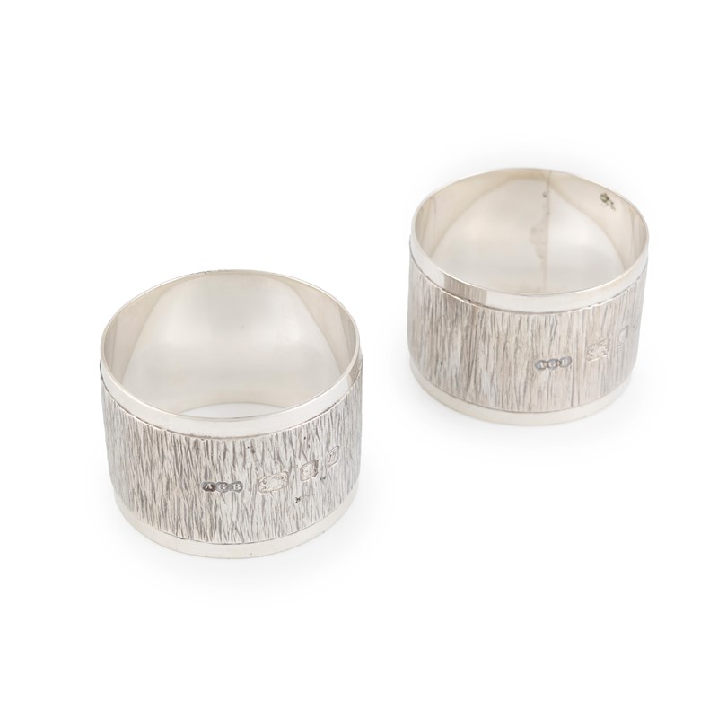By Gerald Benney, a pair of modern silver napkin rings, London 1968, circular form with a band of
