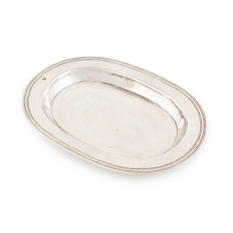 A rare James I West-Country silver dish,by Edward Harsell, Bristol circa 1620,oblong form, engraved