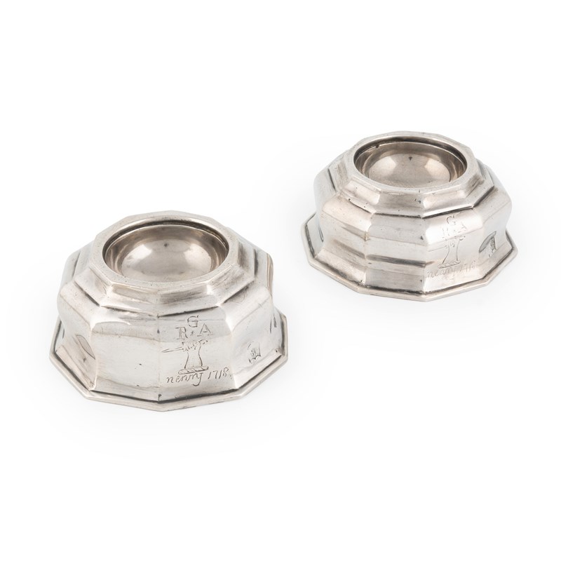 A pair of George I Irish silver trencher salt cellars,by Joseph Walker, Dublin circa 1720,ten-sided