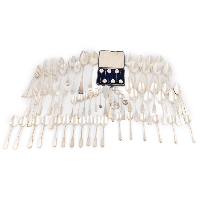 A collection of silver flatware,