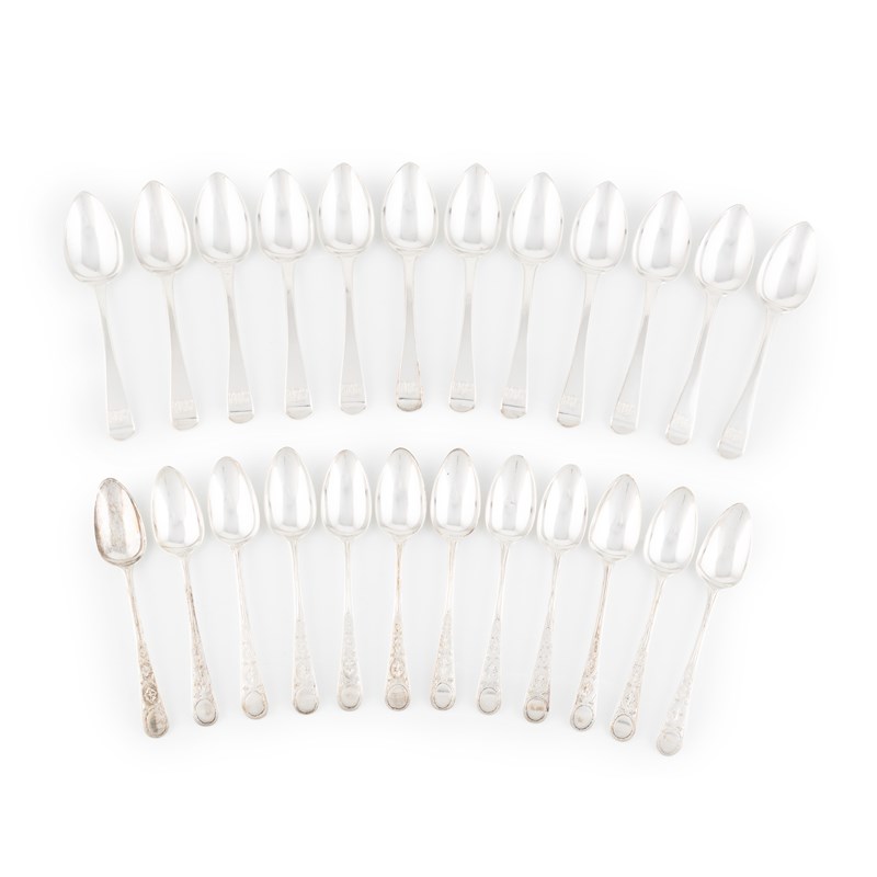 A set of twelve George III silver Old English pattern teaspoons,