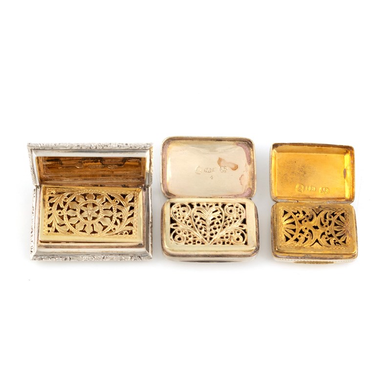 comprising: one by Ledsam, Vale & Wheeler, Birmingham 1829, engine-turned decoration, plus one by Matthew Linwood, Birmingham 1814, and one other, Birmingham 1823, approx. weight 1.4oz. (3)