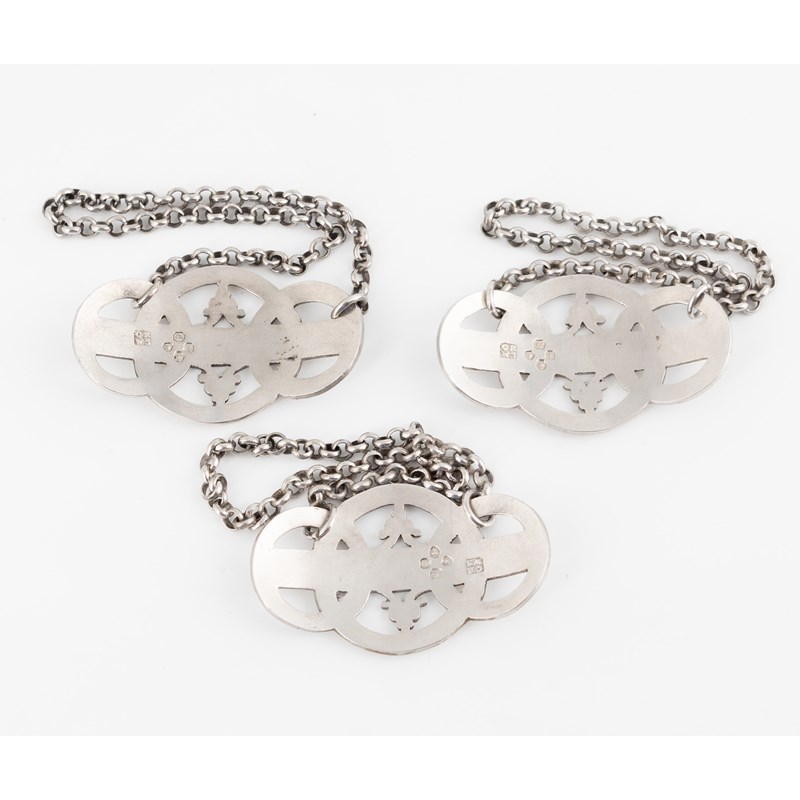 A set of three Victorian silver wine labels,