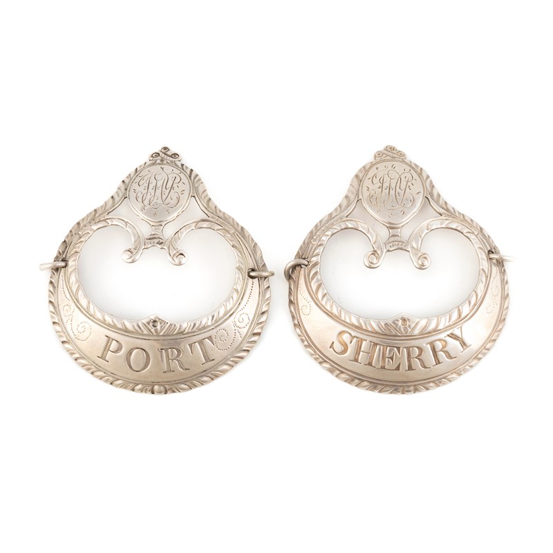 A pair of George III silver wine labels,