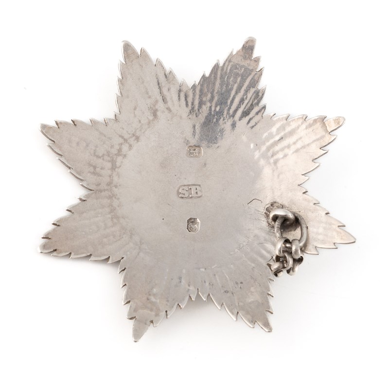 eight-pointed star form with engraved decoration, incised 'Sherry', length 6.3cm, approx. weight 0.6oz.